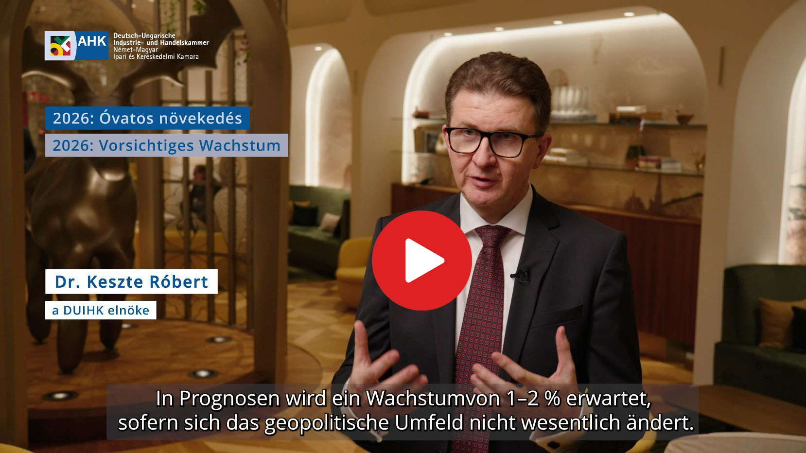 Auf dem Jahresauftakt der DUIHK haben wir die drei Wirtschaftsexperten, die auf der Veranstaltung vorgetragen haben, um Ihre Einschätzung zur Konjunktur gebeten: Kommt 2026 das Wachstum wieder? Und welche Voraussetzungen sind nötig, um langfristig wettbewerbsfähig zu sein. Sehen Sie in unserem Video die Antworten von Prof. Veronika Grimm, István Madár und DUIHK-Präsident Róbert Keszte.